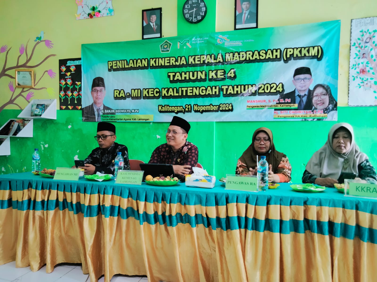 Sedangkan Penilaian Kinerja Kepala Madrasah Tahap Kedua dilaksanakan pada hari Kamis, 21 November 2024 bertempat di MI Ihyaul Ulum Desa Sugihwaras Kec. Kalitengah dengan dihadiri oleh perwakilan Kasi Pendma Kemenag Kab. Lamongan yaitu Bapak Safuan Hadi, S.Pd. Dalam sambutan ketika pembukaan PKKM, beliau menyampaikan permohonan maaf atas nama bapak Kasi Pendma Kemenag Kab. Lamongan Bpk. H. Banjir Sidomulyo, M.Pd karena ada tugas yang bersifat penting lainnya sehingga berhalangan hadir. Selain itu beliau juga menyampaikan PKKM dilaksanakan sesuai intruksi dari Kanwil Kemenag Prov. Jawa Timur dan ditindaklanjuti oleh Kantor Kemenag Kab. Lamongan. Sesuai dengan motto madrasah "Madrasah Maju Bermutu Mendunia" meskipun kita tidak bisa melakukan semua itu, setidaknya kita bisa dalam koridor itu.